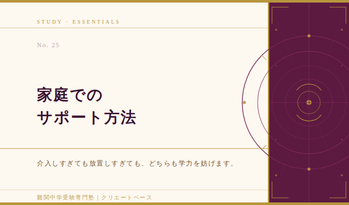 「ここはこうするんじゃないの」という介入をやめてください。勉強の中身は塾と子供に任せる。保護者の方は「環境を整える」「話を聞く」に役割を絞ることが、最も効果的なサポートです。