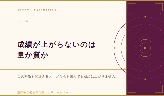 質の問題なのに量を増やすと、お子さんが疲弊するだけで成績は上がりません。量の問題なのにやり方を変えようとすると、基礎演習が不足したまま進むことになります。どちらも方向のミスです。