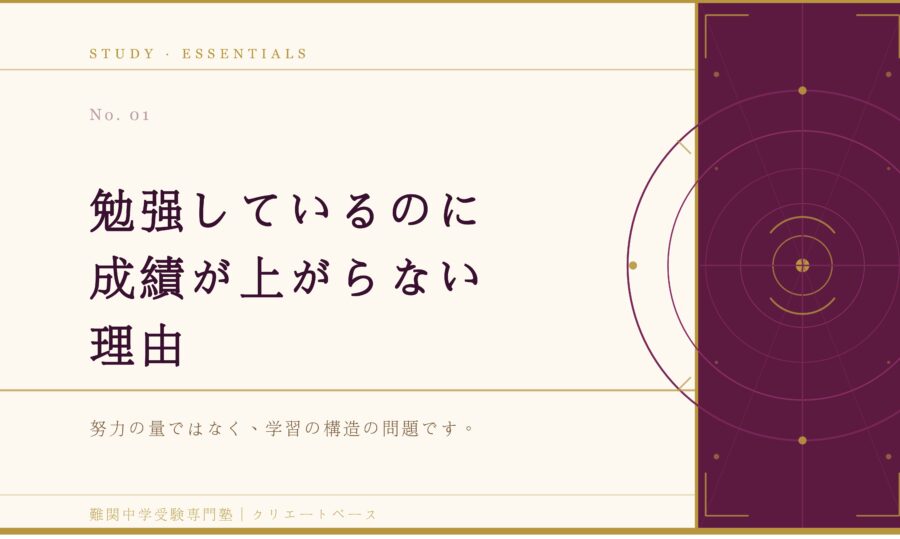 成績が上がらない原因の大半は、「勉強量の不足」ではなく「学習の質の問題」です。
