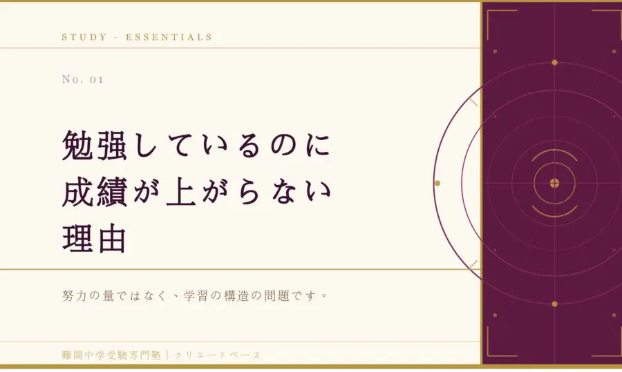 成績が上がらない原因の大半は、「勉強量の不足」ではなく「学習の質の問題」です。